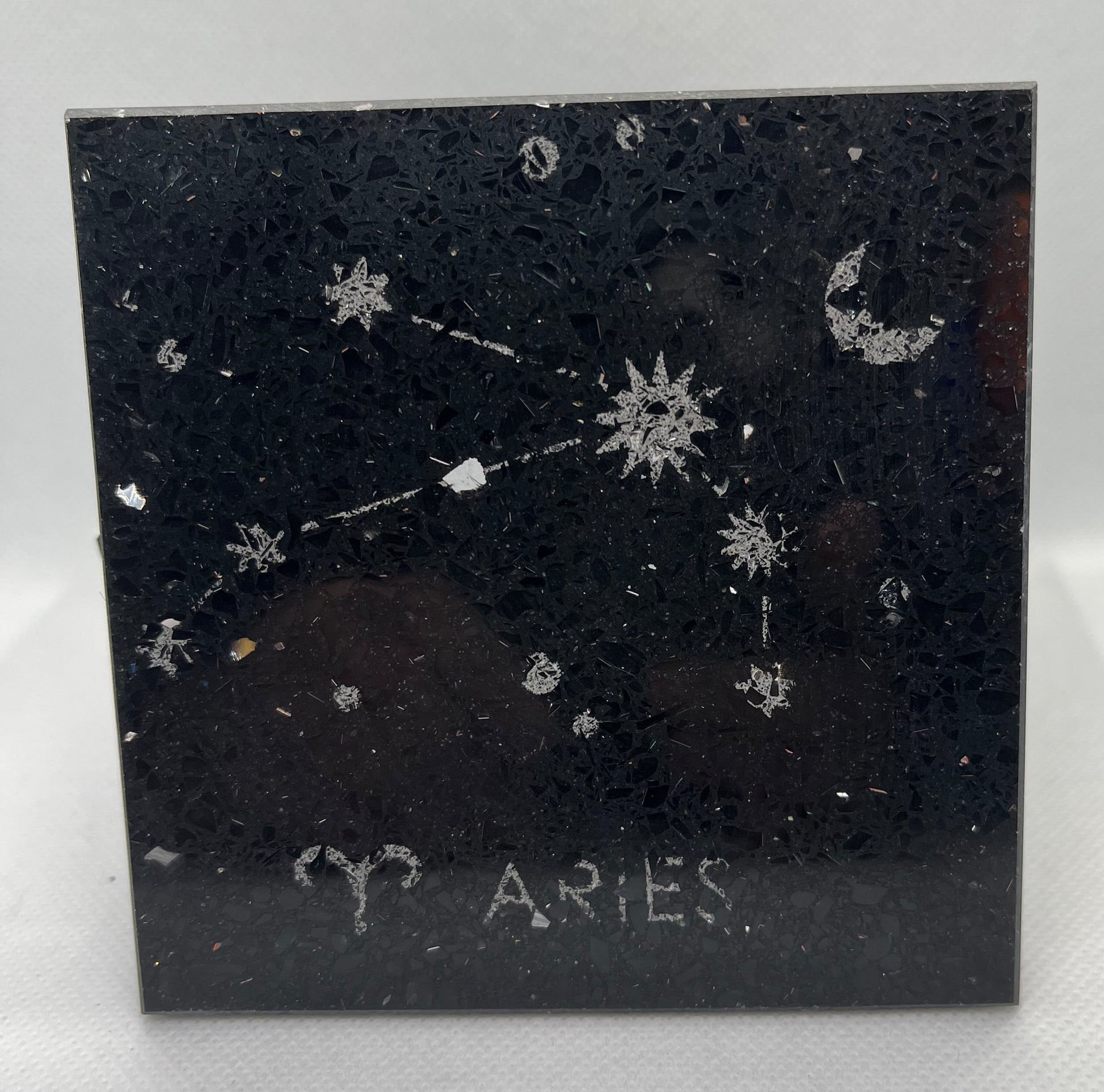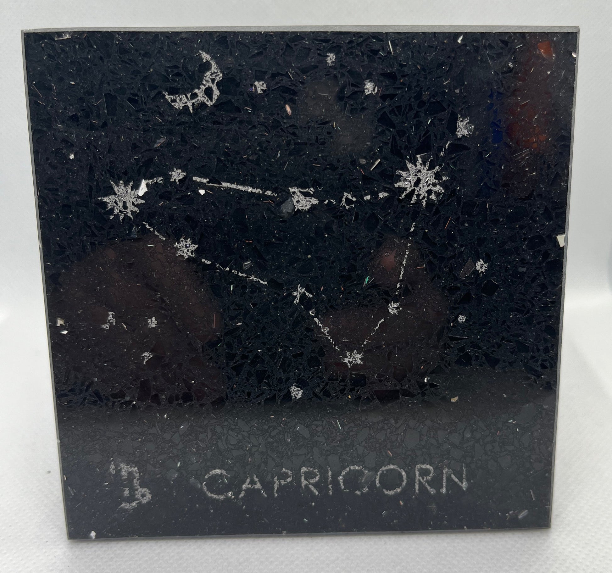 Bring the cosmos to your table with these stunning Constellation Horoscope Coasters, crafted from black mineral quartz with a mesmerizing glitter effect. Each coaster sparkles like a night sky, making your zodiac sign shine in style.