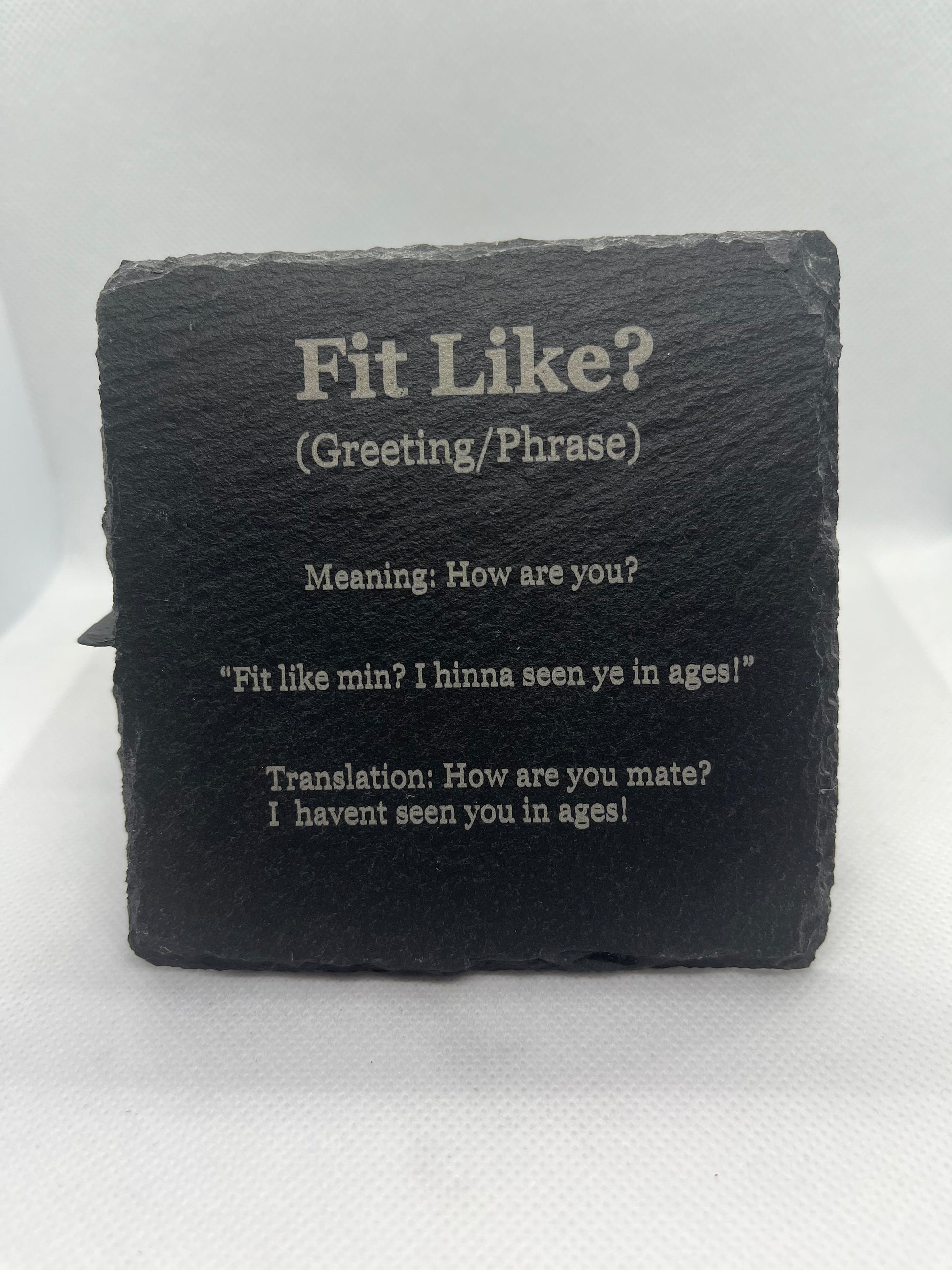 Bring a taste of the North-East to your table with our Doric Dictionary Slate Coasters —each one engraved with a beloved Doric word or saying, complete with its meaning. Whether you’re treating yourself to a bit of home comfort or hunting for the perfect Scottish gift, these coasters pair rustic charm with local flavour.